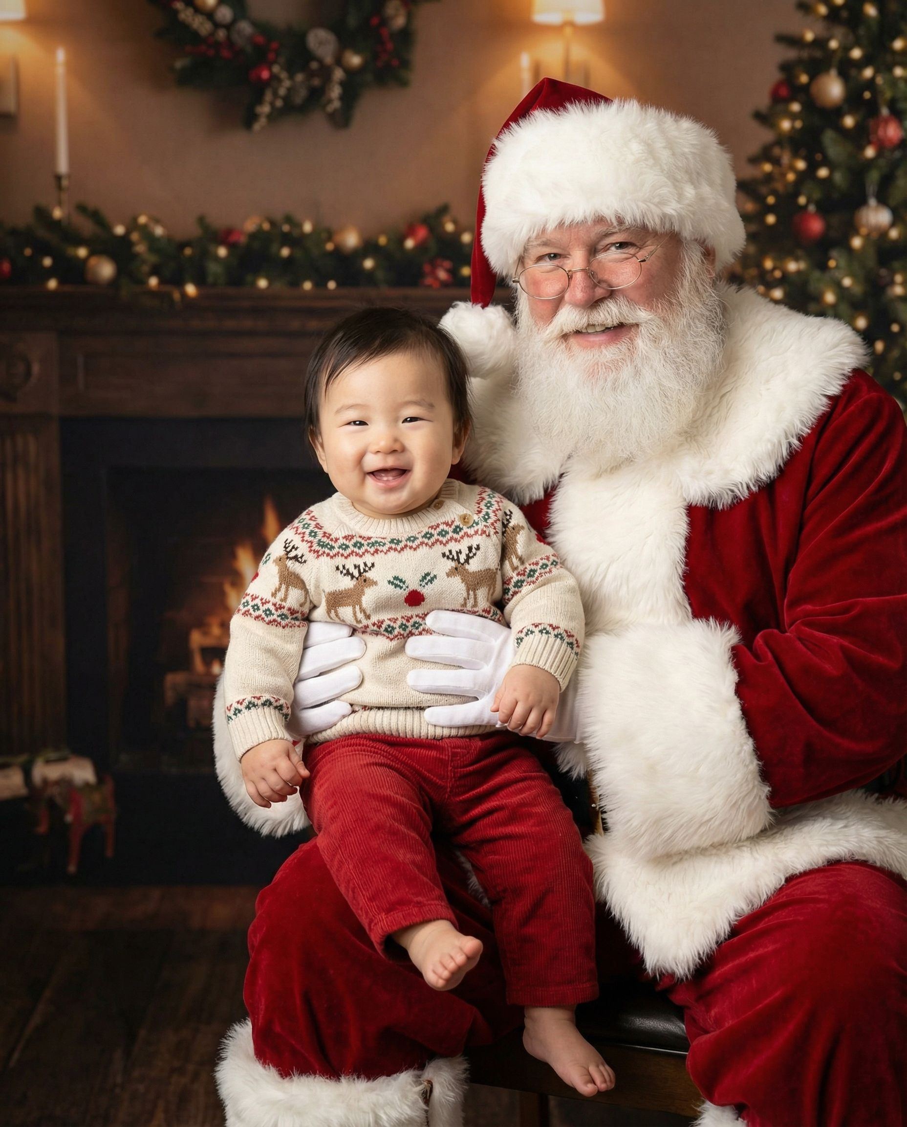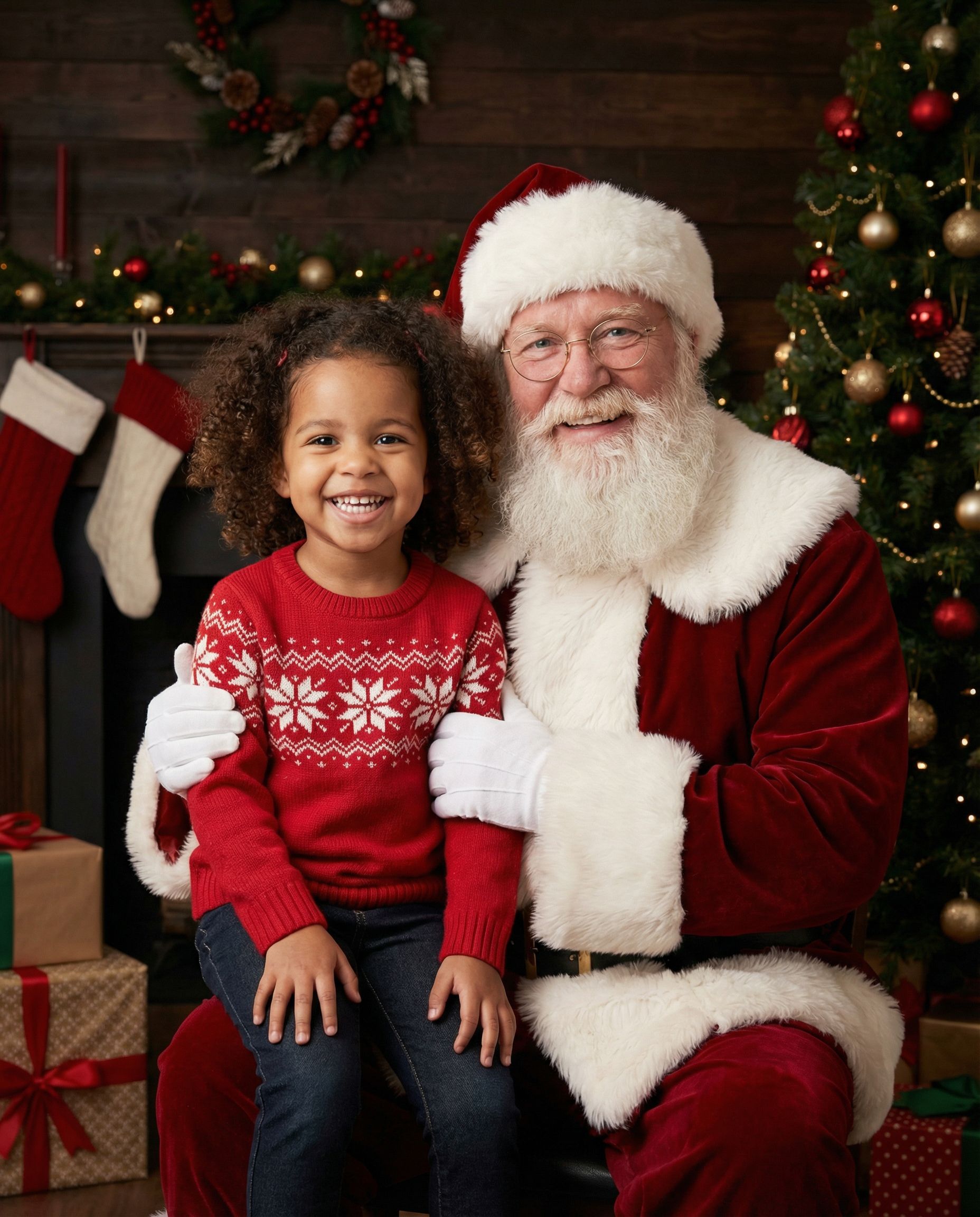 Classic Santa photo session with warm, professional lighting — perfect for families and kids.