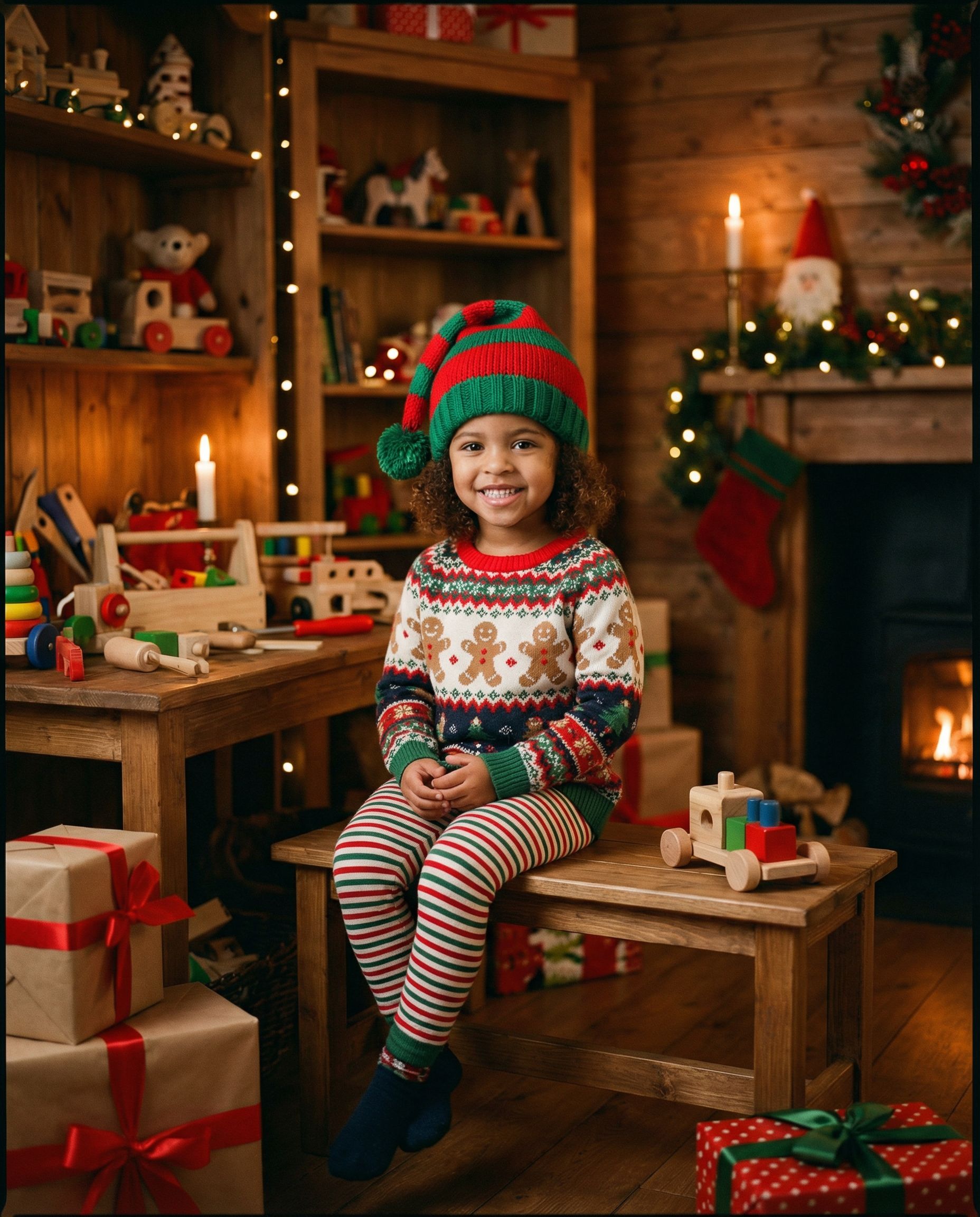 Magical workshop scenes with toys and soft lighting — perfect for kids.