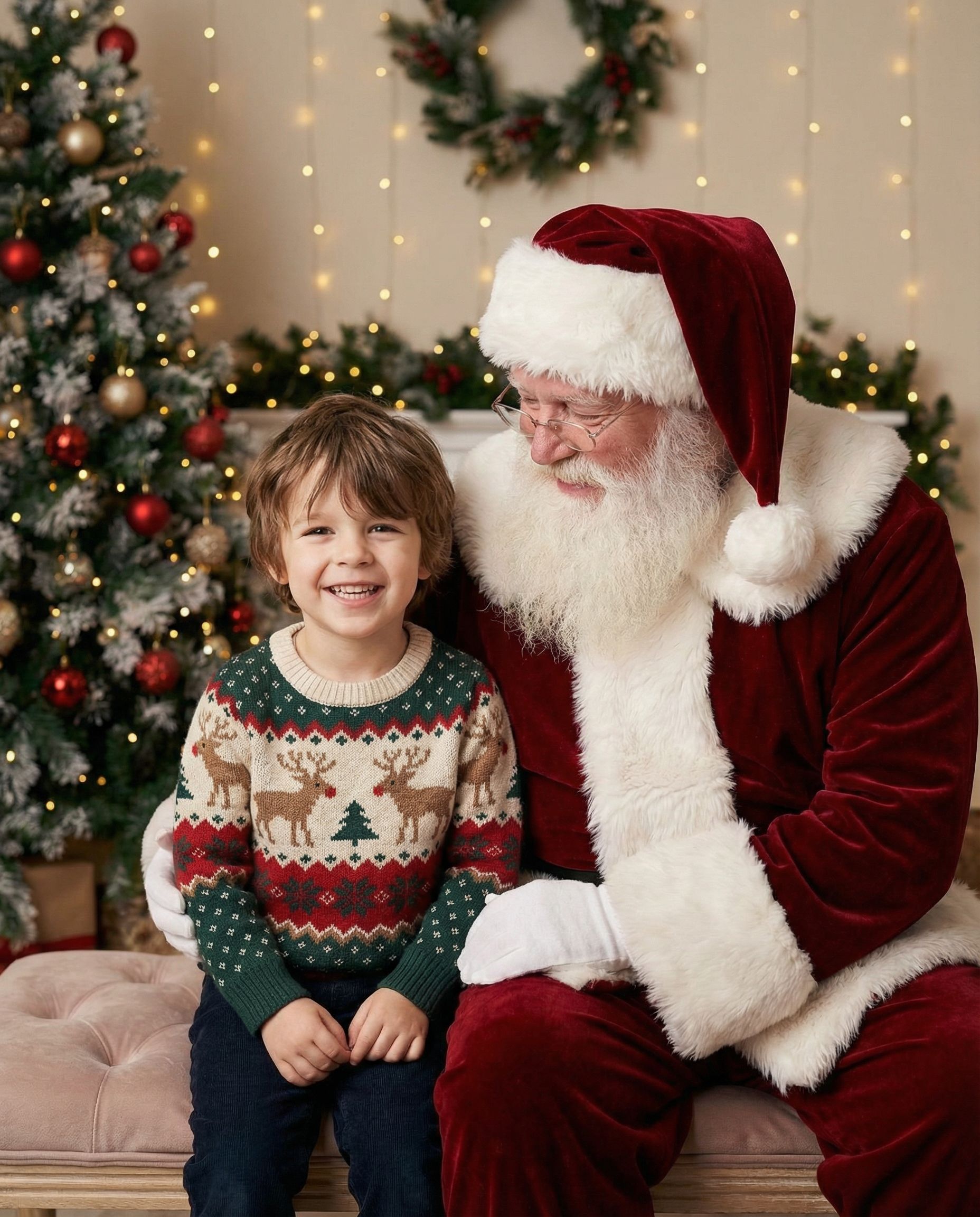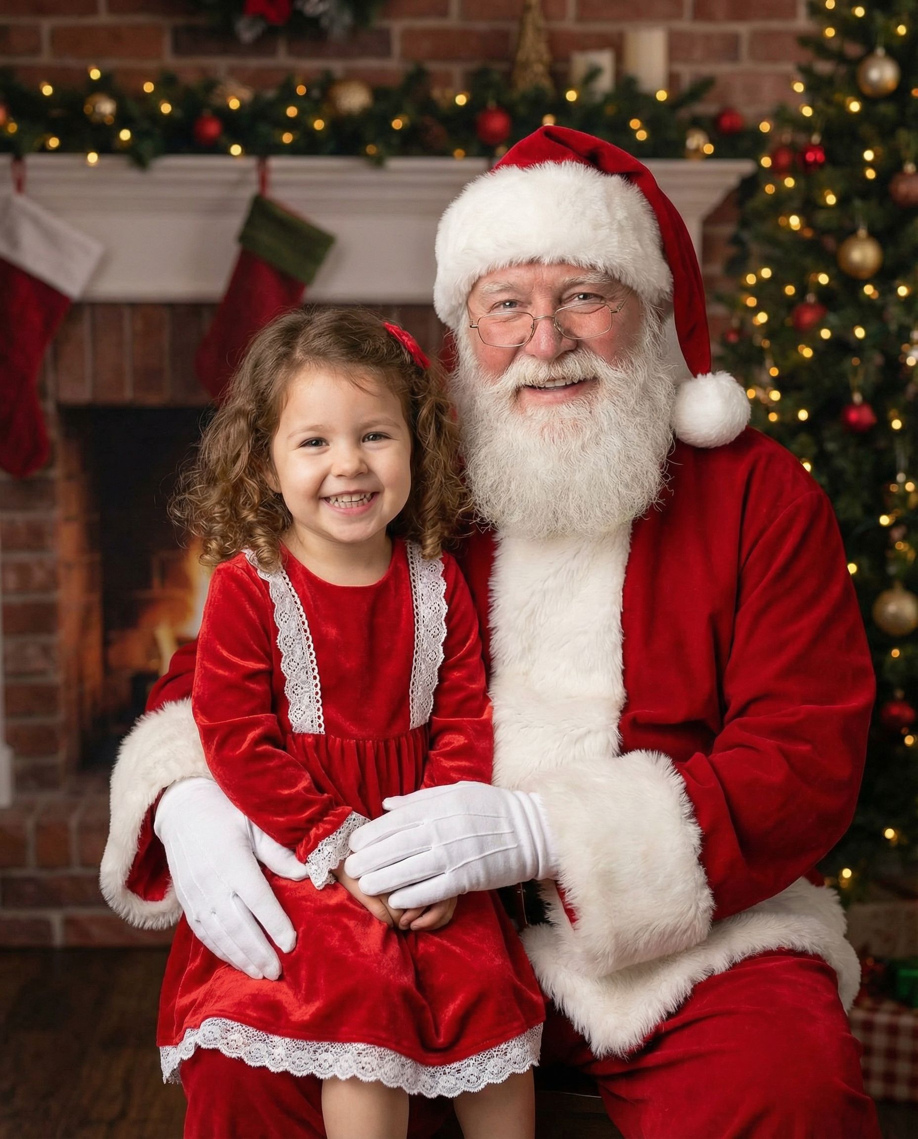 Classic Santa photo sessions with warm, professional lighting.
